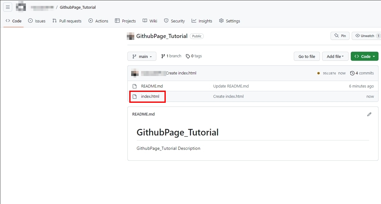 - GitHub Pages首頁的內容是當初建立Repository時README.md的內容,如果要顯示自己想要的首頁畫面,需要新增一個index的html檔,系統預設會去吃檔名index的檔案。